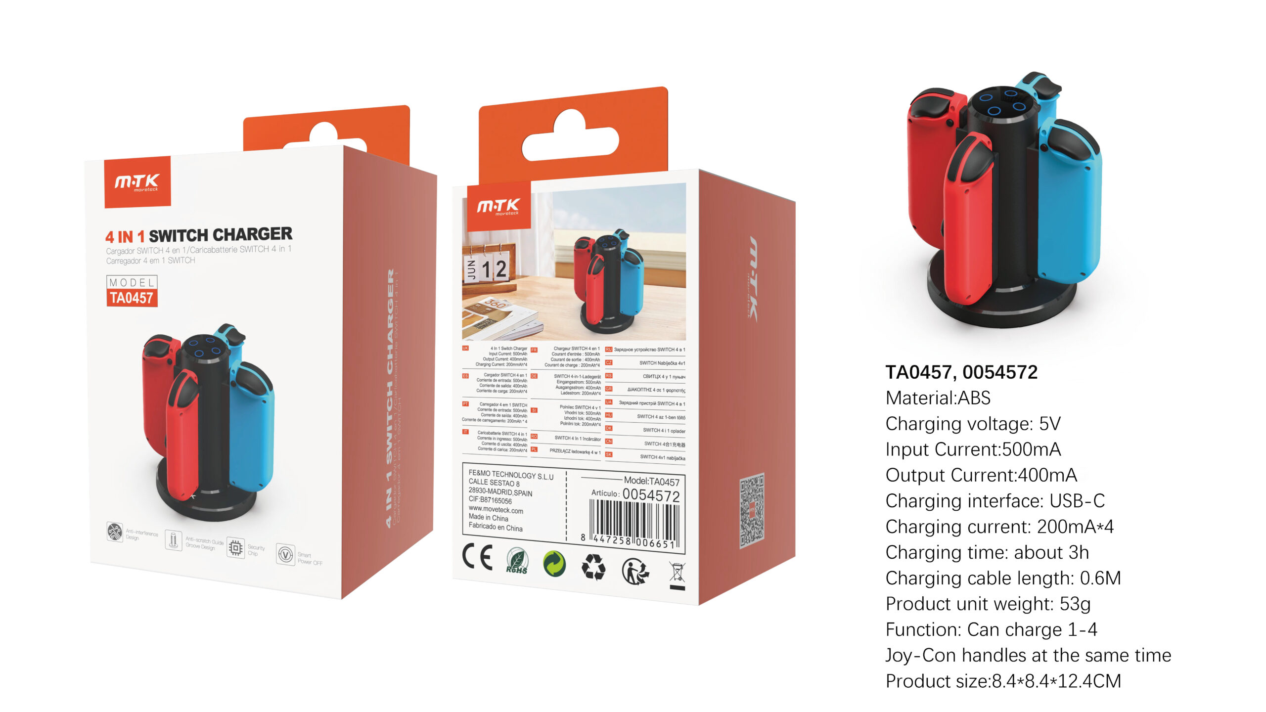 TA0457 NE 4 en 1 NE Cargador de controlador de Nintendo Switch, Negro