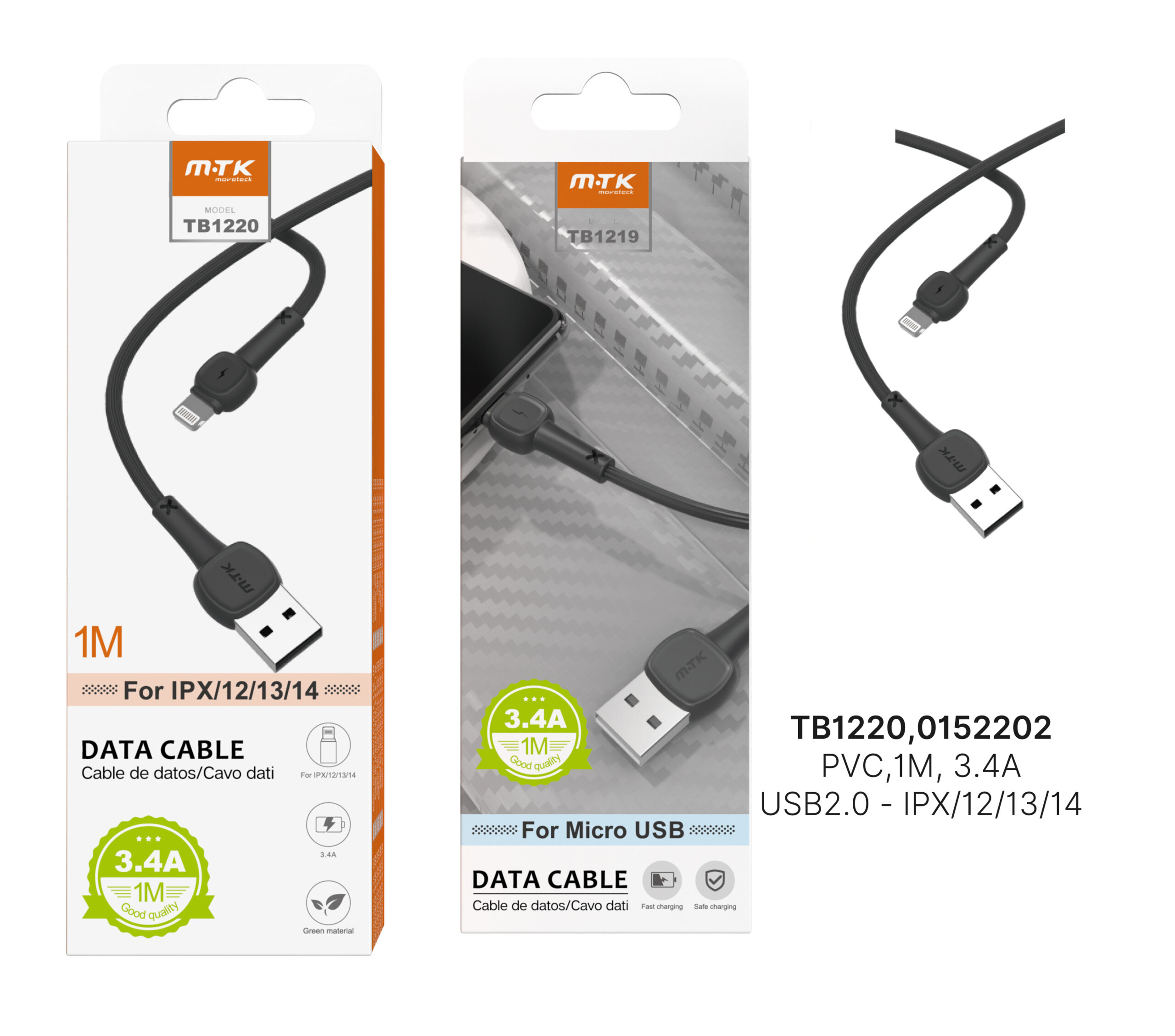 TB1220 NE Cable de Datos M.Karron para IP 5 – 11, 3.4A 1M, Negro