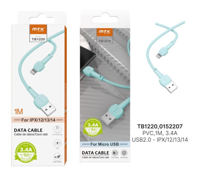 TB1220 VE Cable de Datos M.Karron para IP 5 – 11, 3.4A 1M, Verde