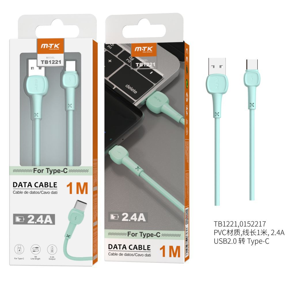 TB1221 VE Cable de Datos M.Karron para Type C, 2,4A 1M, Verde