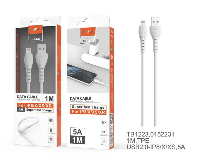 TB1223 BL Cable de Datos Butter para IP 5 -11, 5A Carga Rapida con Longitud 1M, Blanco