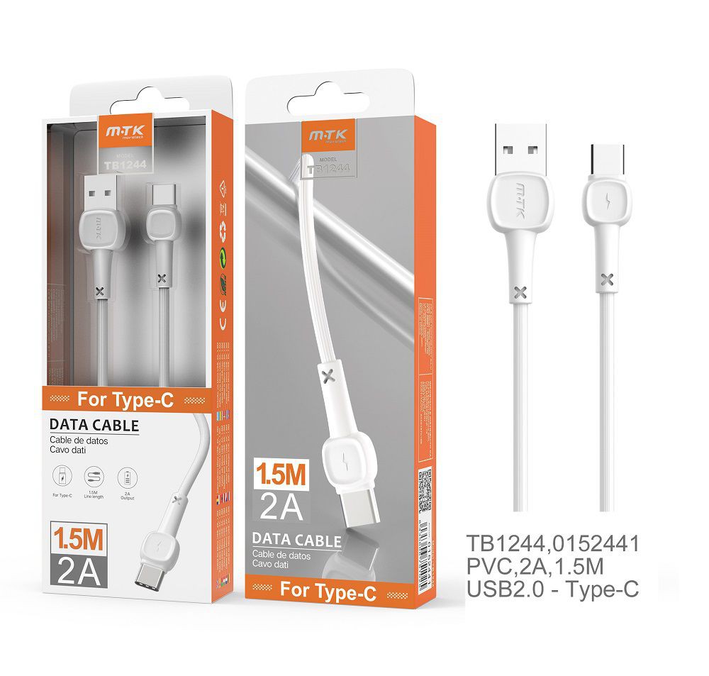 TB1244 BL Cable de Datos M.Karron paraType C, 2,0A 1.5M, Blanco