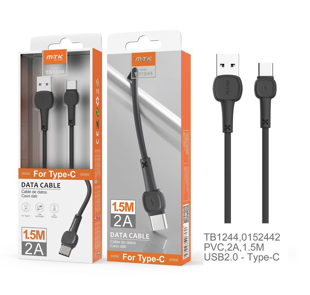 TB1244 NE Cable de Datos M.Karron paraType C, 2,0A 1.5M, Negro