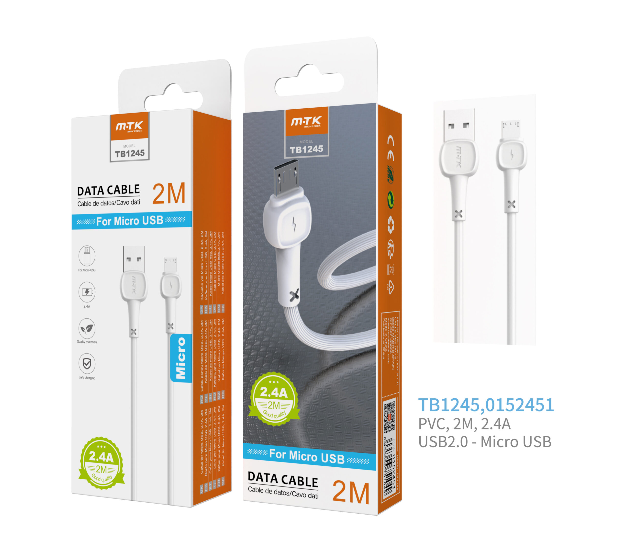 TB1245 BL Cable de Datos M.Karron para MicroUSB, 2.4A 2.0M, Blanco