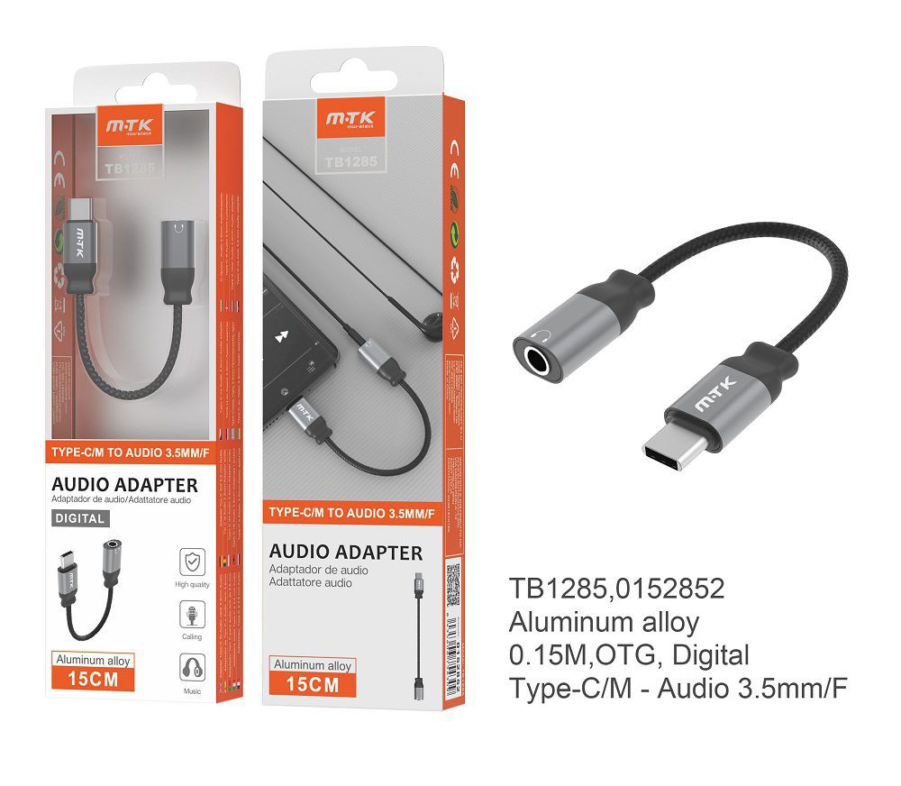 TB1285 NE Cable de Adaptador Metal de Type C Macho a Audio 3.5mm Hembra, 0.15m Solucion Digital, Negro