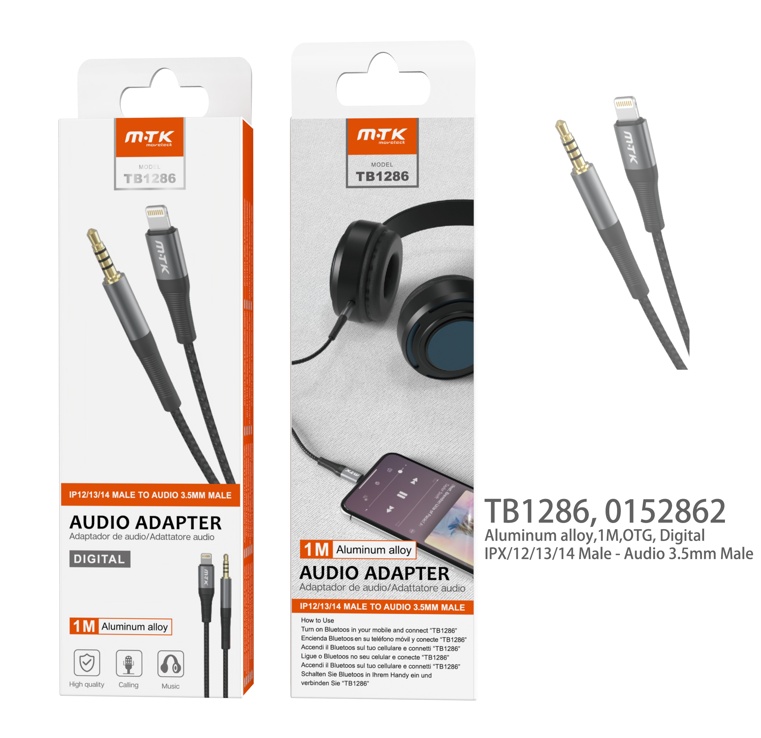 TB1286 NE, Cable Adaptador de Audio 3,5mm macho para IP 7/8/X, con funcion Microfono , 1M, Solucion digital para la Mayoria de Moviles con Type C, Ne