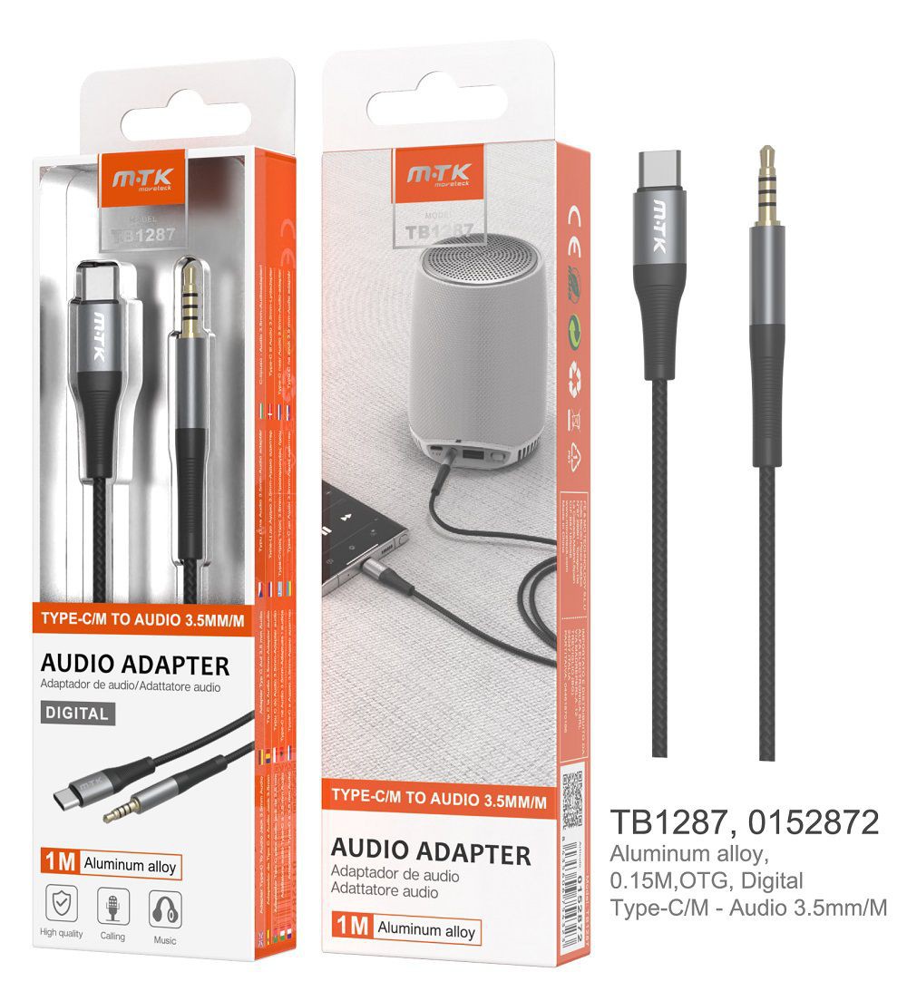 TB1287 NE Adaptador Audio Aluminio Type C Macho a 3.5mm Audio Macho, Negro