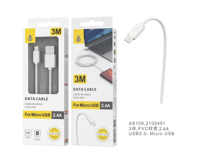 • AS109-Cable de dato Para MicroUSB 2.4A, 3M Negro