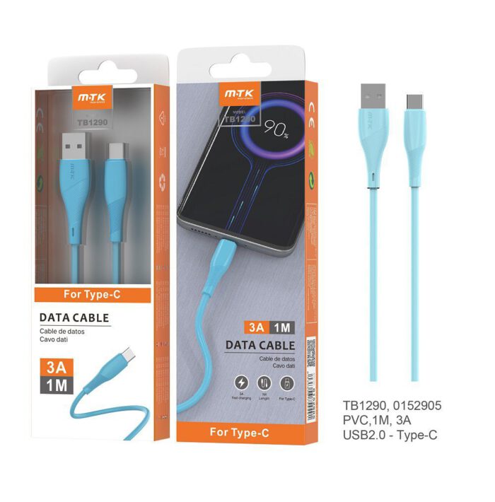 TB1290 AZ Cable de datos PVC Venus para Type-C, 1M, 3A AZUL