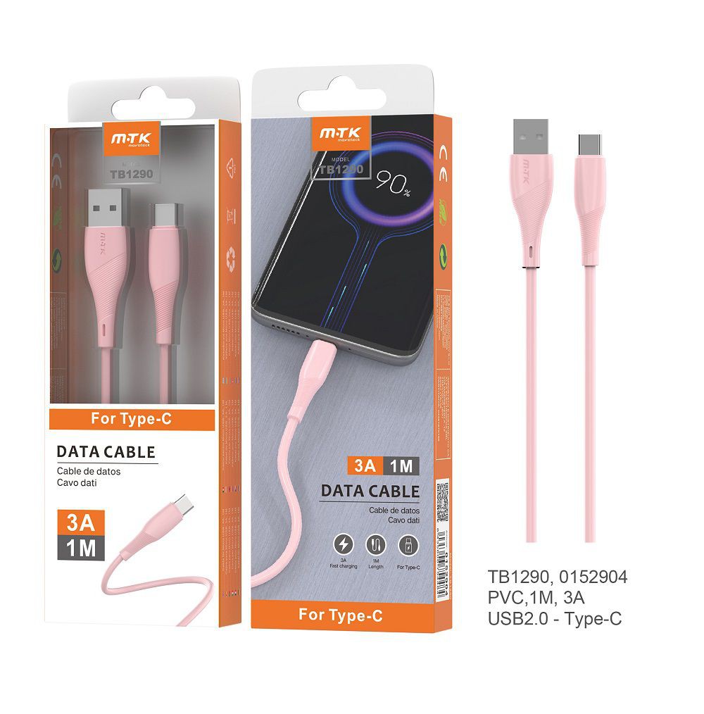 TB1290 RS Cable de datos PVC Venus para Type-C, 1M, 3A ROSA