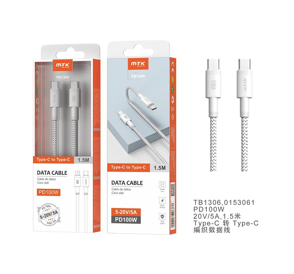 • TB1306 NE Cable de Datos trenzado Agnes Type C a Type C, Funcion de SuperCarga PD, 100W compatibl