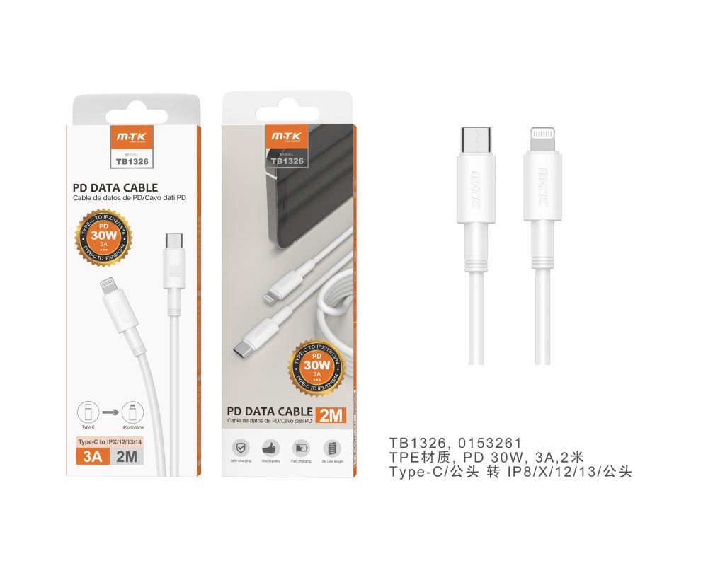 TB1326  BL Cable de Datos Swift , Type-C a Lightning ,Carga Rapida PD 30W/3A ,Cable 2M ,Blanco