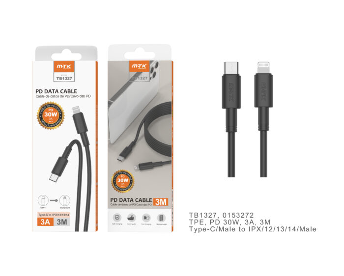 TB1327 NE Cable de Datos Swift , Type-C a Lightning ,Carga Rapida PD 30W/3A ,Cable 3M ,Negro