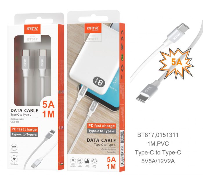 • BT817 NG CableType-C a Type-C, Alta velocidad/Soporte PD, Negro