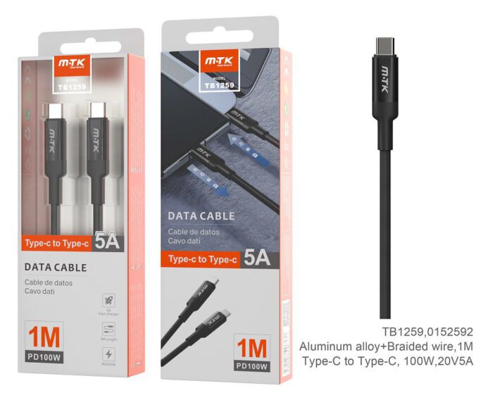• TB1261 NE Cable de Datos Aluminio Type C a Type C, Soporta a SuperCarga PD, 100W compatible para Portatiles y Moviles, 2M, Negro