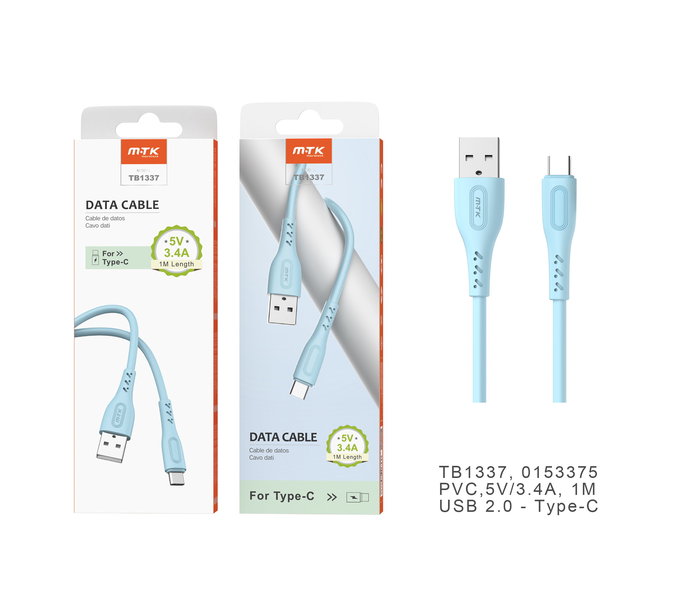 TB1337 AZ Cable de datos Clea para Type-C , 5V/3.4A, 1M , Azul