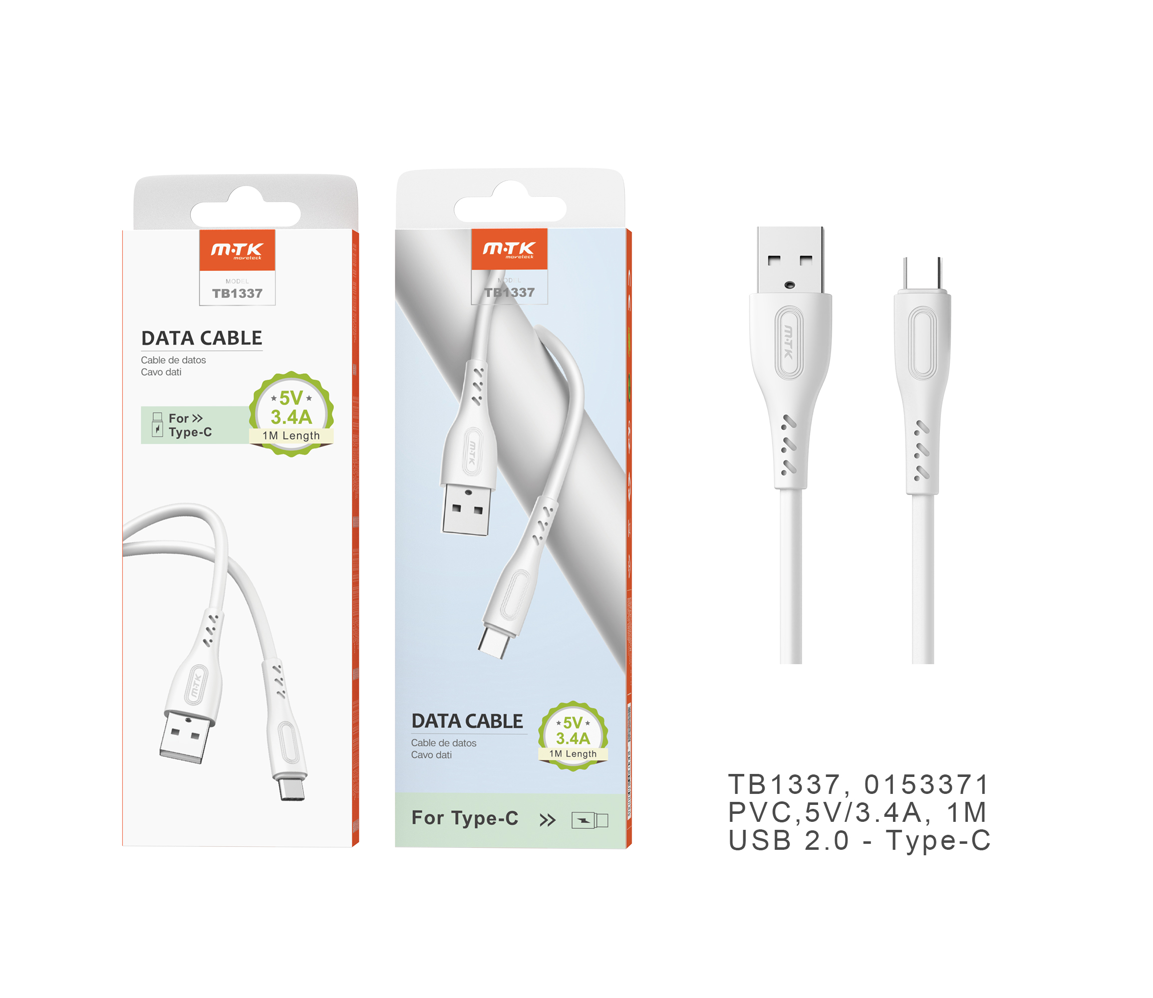 TB1337 BL Cable de datos Clea para Type-C , 5V/3.4A, 1M , Blanco