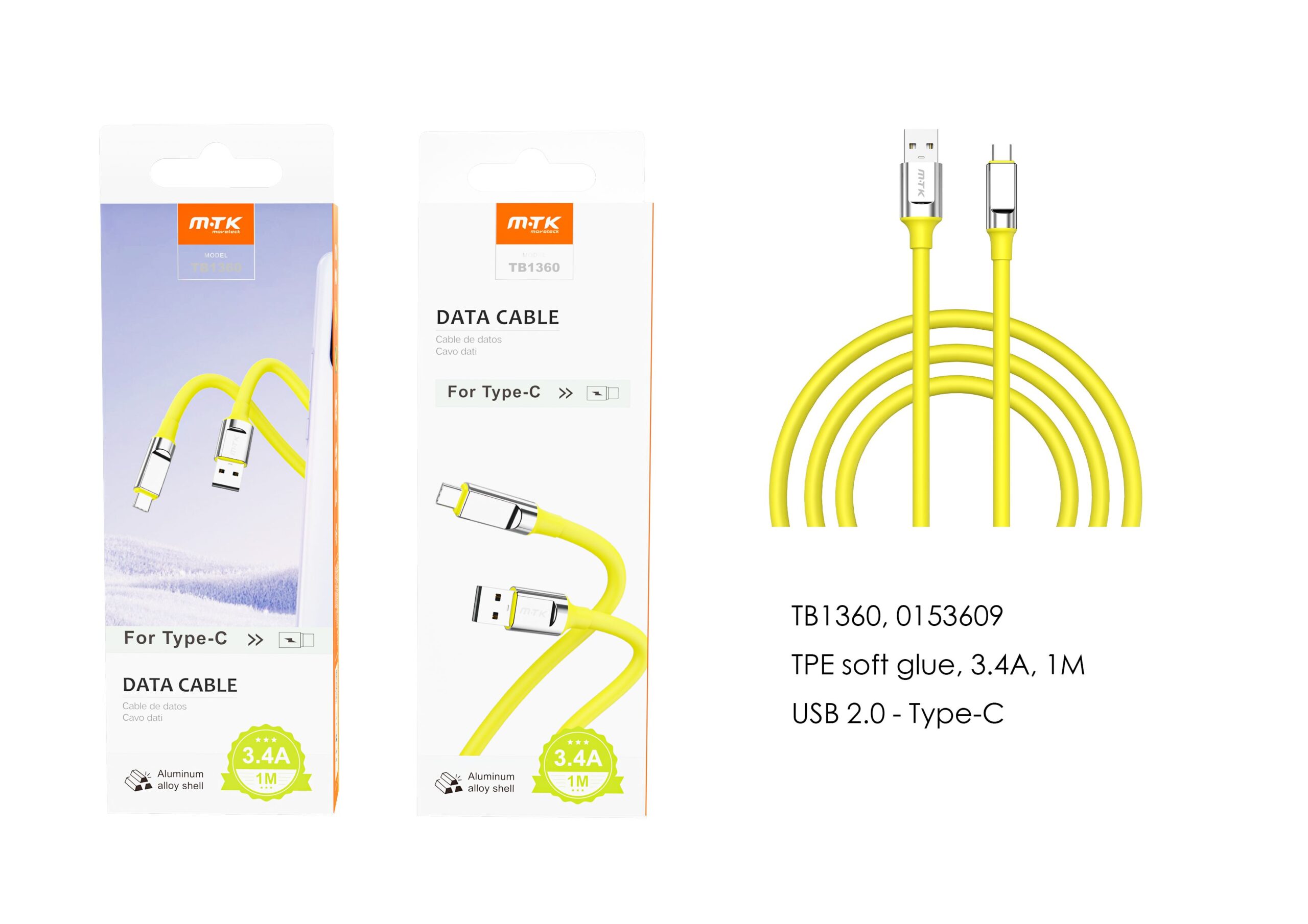 TB1360 AM Cable de Datos Cyril para Type-C , 1M, 3.4A, Amarillo