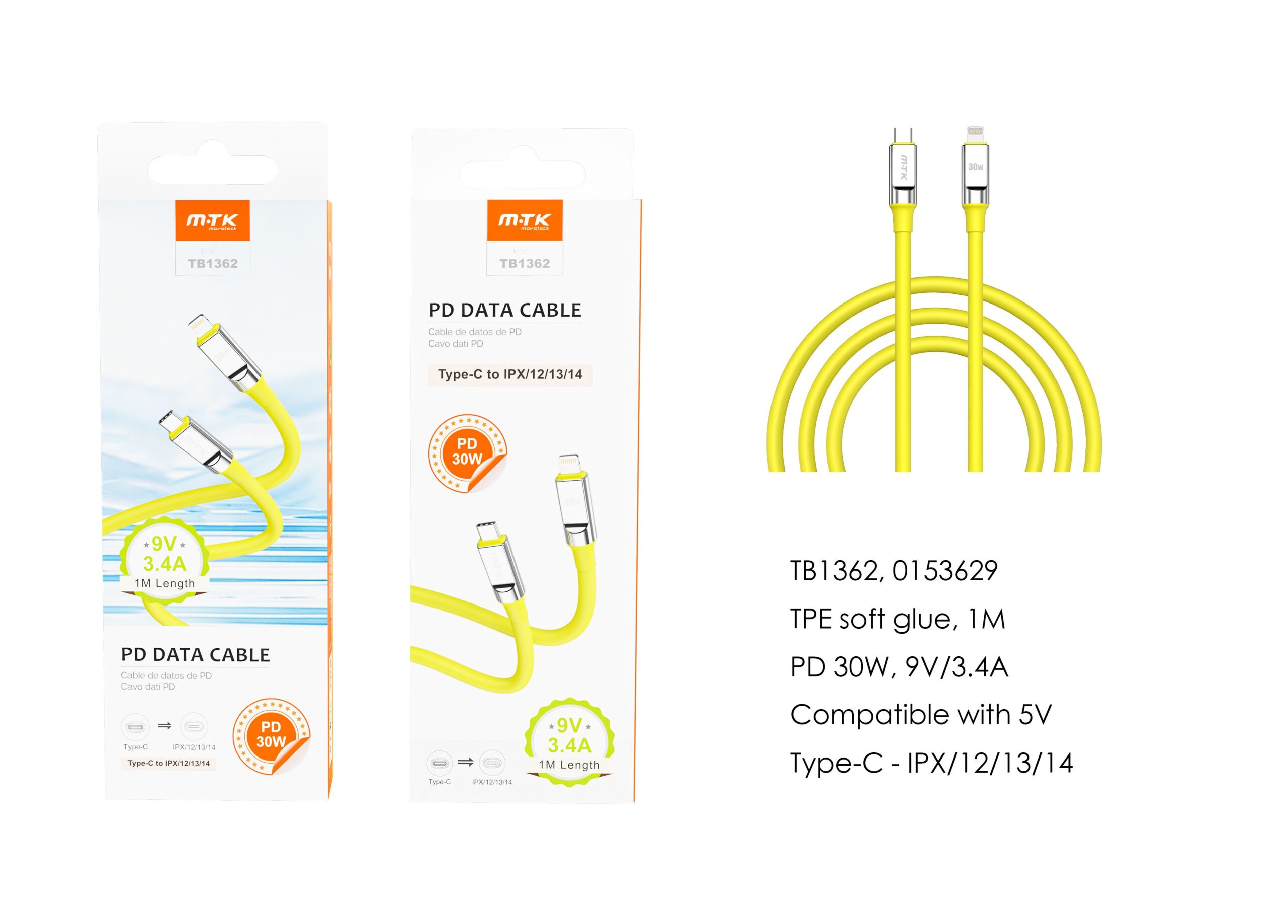 TB1362 AM Cable de datos Cyril para Type-C a Lightning , Carga Rapida PD, 30W/9V/3.4A, 1M, Amarillo
