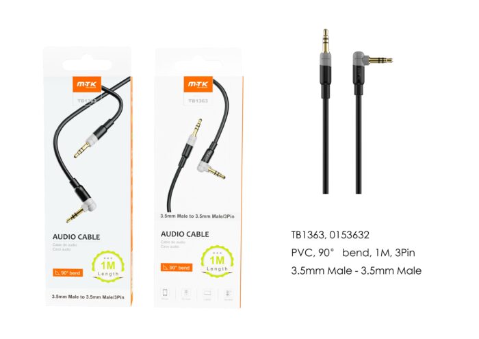 TB1363 NE Cable de Audio en L 90° ,1M, Negro