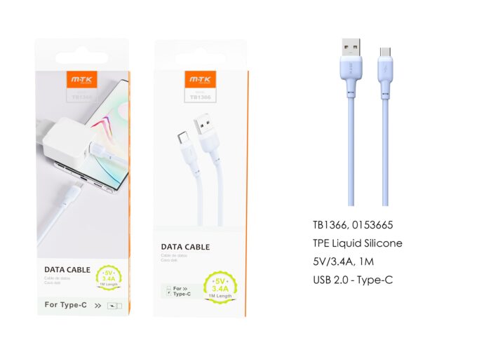 • TB1244 BL Cable de Datos M.Karron paraType C, 2,0A 1.5M, Blanco