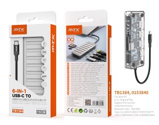 TB1384 BL lector TYPE-C Hub 4 en 1, 2*USB2.0 + 1*USB3.0+HDTV+SD+TF, Compatible con OTG/4K, 15CM, Blanco