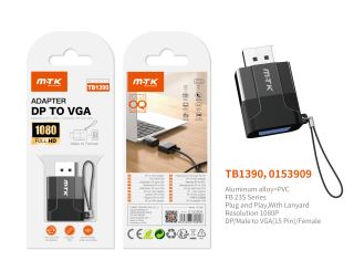 • TB1390 NE Adaptador con Correa DP (Macho) a VGA 15 Pin(Hembra), 1080P, Negro