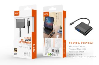 TB1415 NE Adaptador 2 en 1 Lightning(Macho) a VGA 15 Pin+Lightning (Hembra), 1080P, 12CM, Negro
