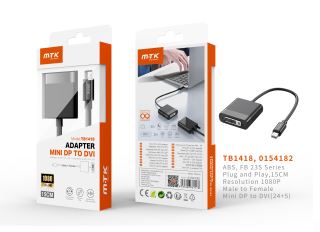 TB1418 NE Adaptador Mini DP(Macho) a DVI 24+5(Hembra), 1080P, 15CM, Negro