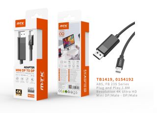 TB1419 NE Adaptador Mini DP(Macho) a DP(Macho), 4K, Cable 1.8M, Negro