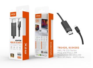 TB1420 NE Adaptador Mini DP(Macho) a HDMI(Macho), 4K, Cable 1.8M, Negro