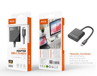 TB1426 NE Adaptador Type-C(Macho) a HDMI(Hembra), 4K,  15CM, Negro