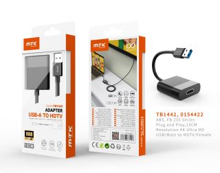 TB1442 NE Adaptador USB(Macho) a HDM(Hembra),4K, 15CM, Negro