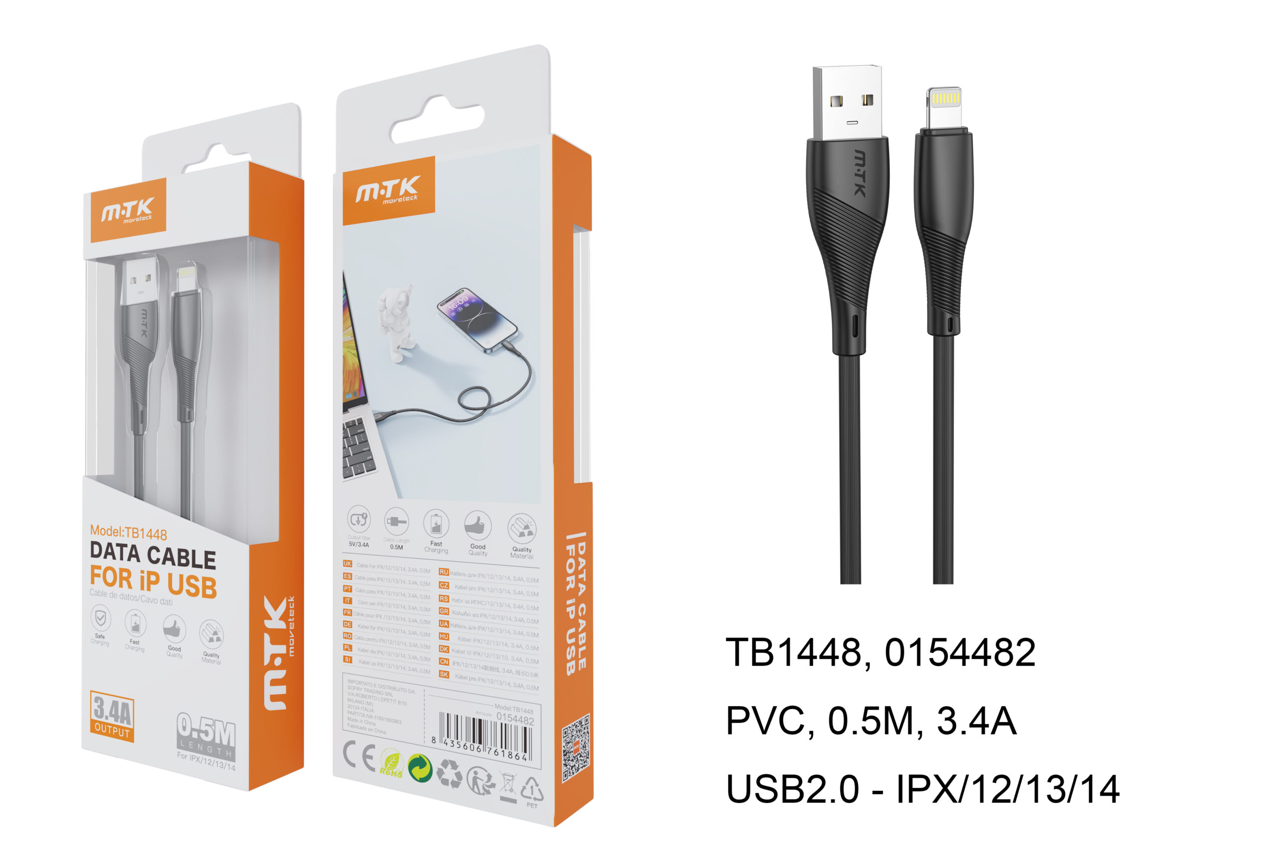 TB1448  NE Mini Cable de Datos Walsh para Iphone 5-14 , 3.4A, Cable 0.5M, Negro