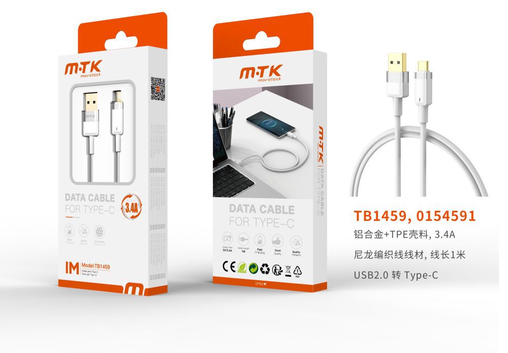 TB1459 BL Luxury Cable de datos Silas nylon trenzado para Type-C , 5V/3.4A, 1M, Blanco