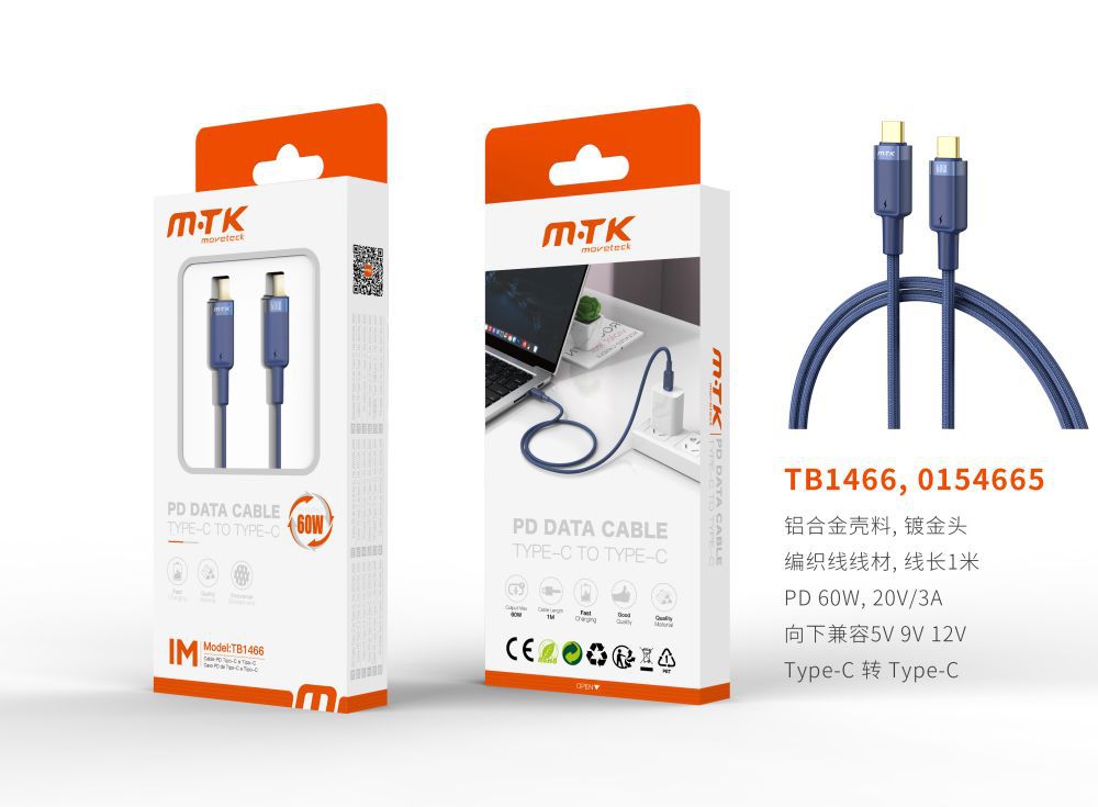 TB1466 AZ Luxury Cable de datos Silas nylon trenzado para Type-C a Type-C , Carga Rapida PD,60W/20V/3A, 1M, Azul