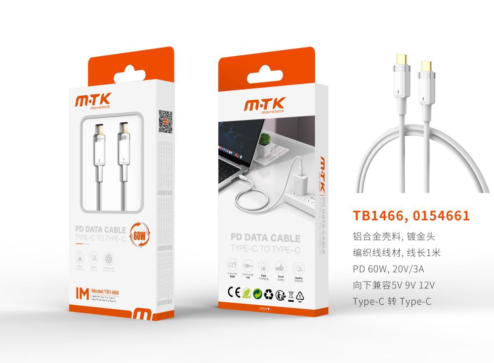 • TB1367 BL Cable de Datos Evie , Type-C a Type-C ,Carga Rapida PD 60W/20V/3A , Cable 1M , Blanco