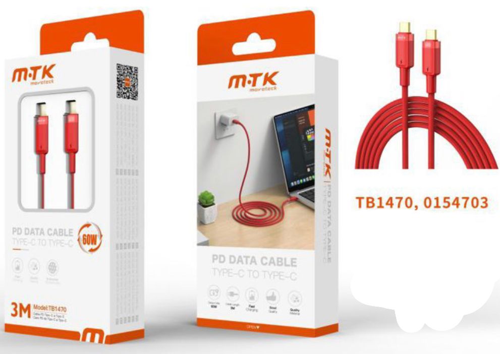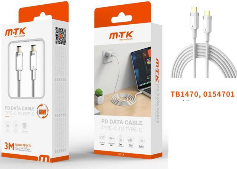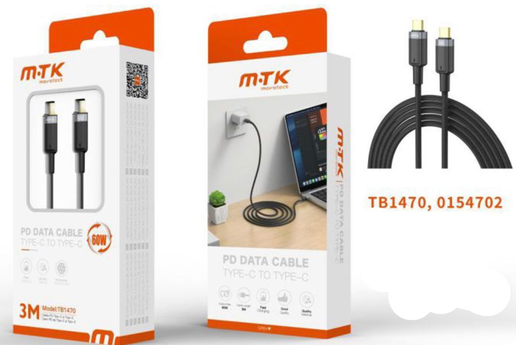 TB1470 CABLE DE NYLON TIPO C- TIPO C 60W/3A/20V 3M