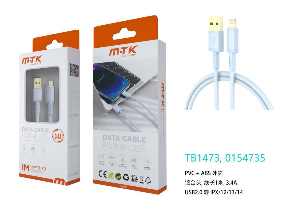TB1473 AZ Luxury Cable de datos Luc  para Iphone 5-14 , 5V/3.4A, 1M, Azul