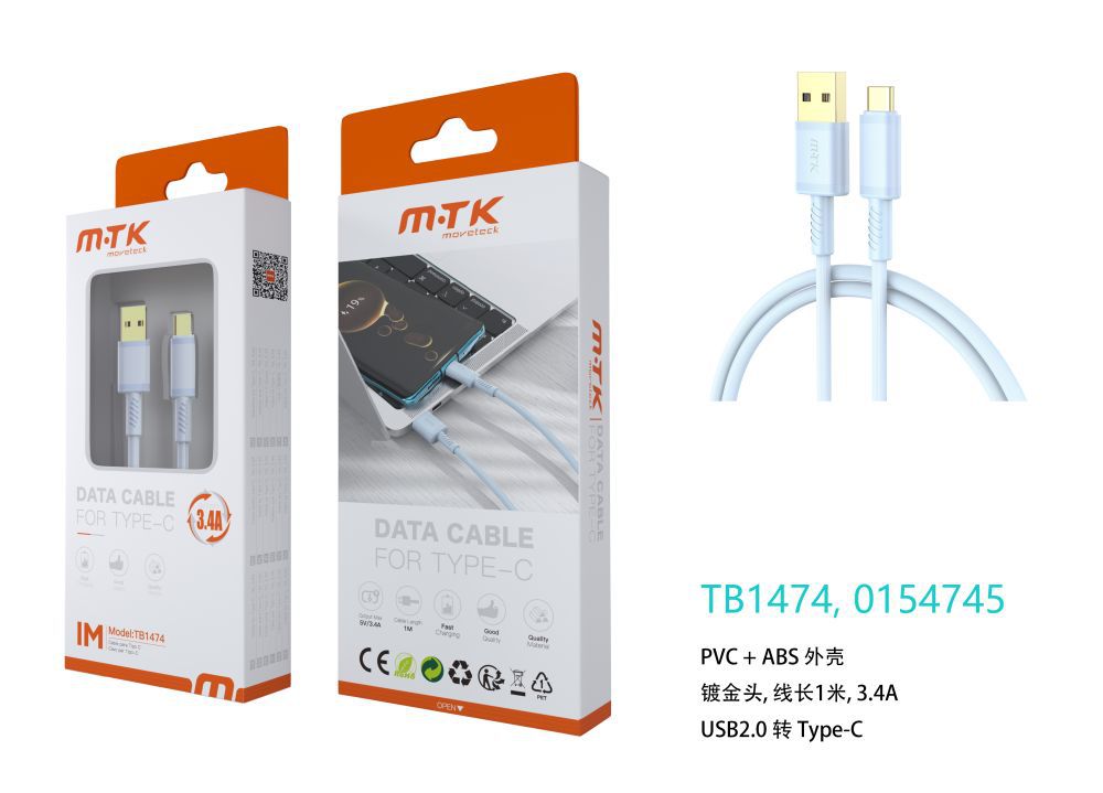 • TB1244 BL Cable de Datos M.Karron paraType C, 2,0A 1.5M, Blanco