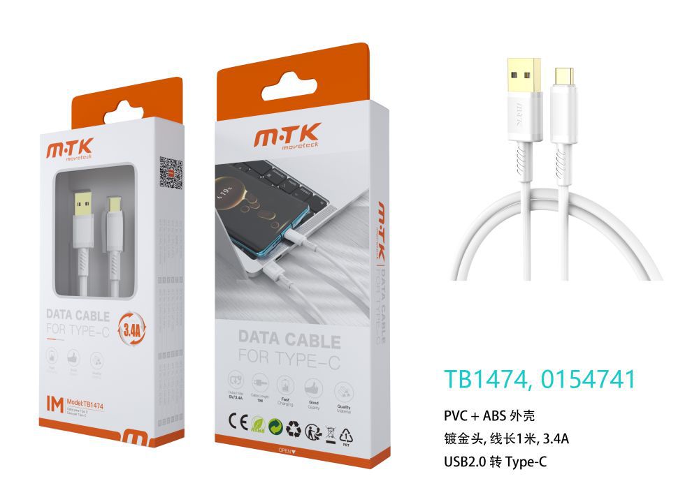 TB1474 BL Luxury Cable de datos Luc  para Type-C , 5V/3.4A, 1M, Blanco