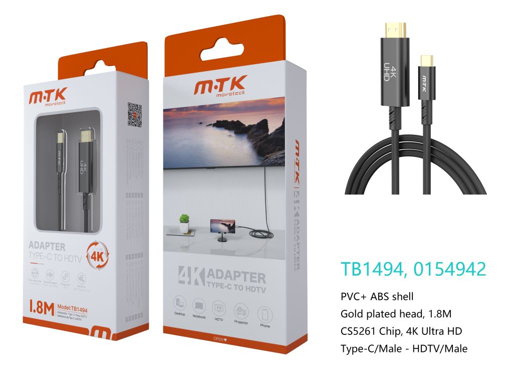 TB1494 NE Luxury Adaptador Type-C(Macho) a HDMI(Macho), 4K/30Hz, Cable 1.8M, Negro