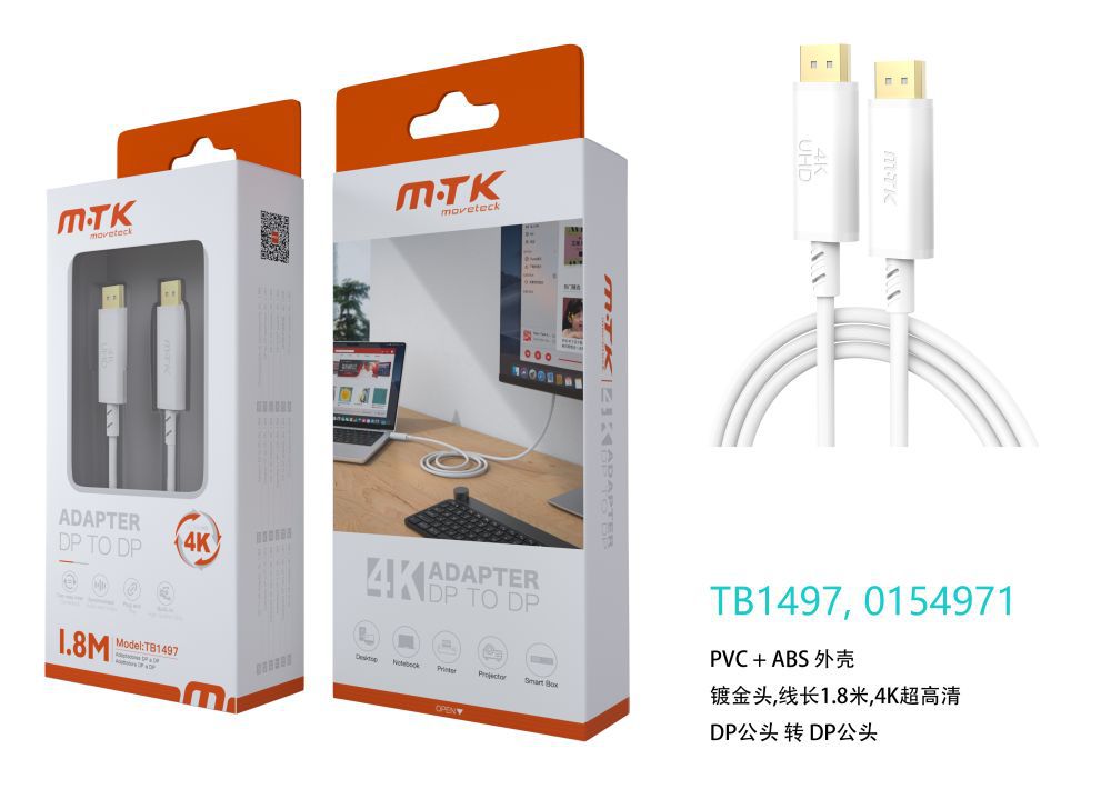 TB1497 BL Luxury Calbe Displayport(Macho) a Displayport(Macho), 4K/60Hz, Cable 1.8M, Blanco