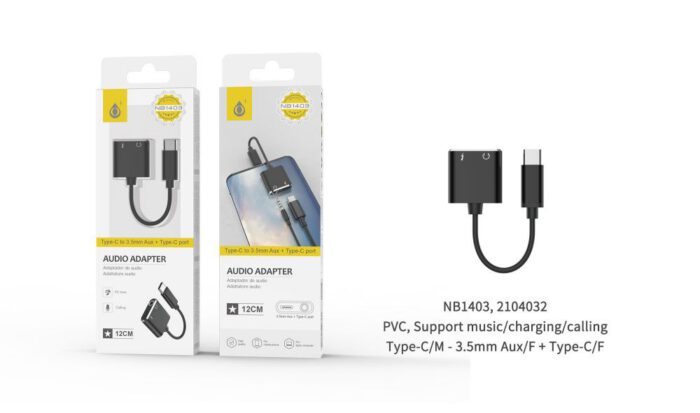 TB1507 NE Adaptador de audio, Type-C(Macho) a 3.5mm(Hembra), Con Codificador Ditigal, 1M, Negro