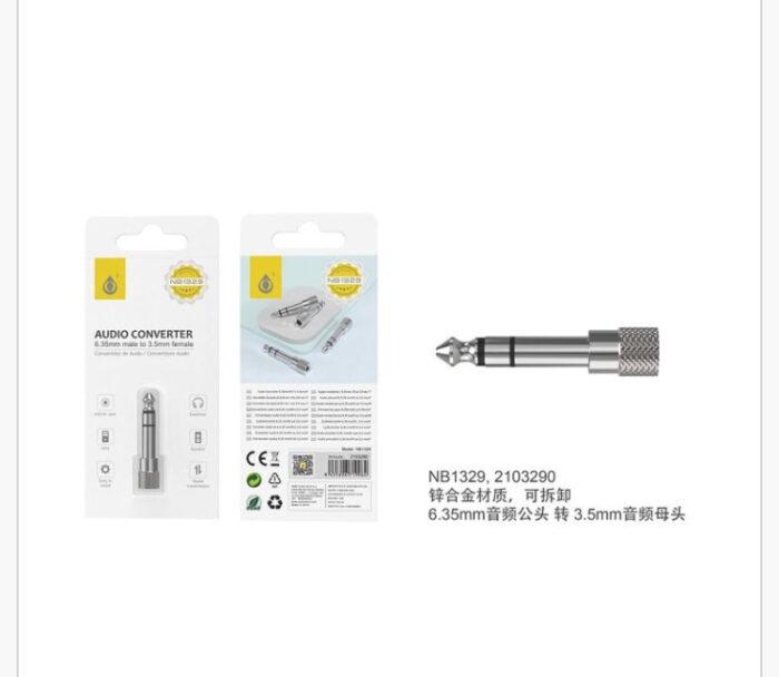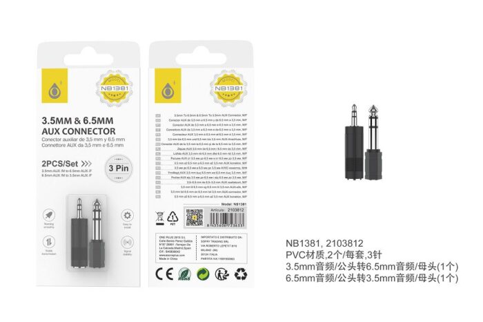 • NB1381 NE Adaptador AUX Pack de 2 ,(AUX 3.5 Macho a 6.5 Hembra),(AUX 6.5 Macho a 3.5 Hembra) , Negro
