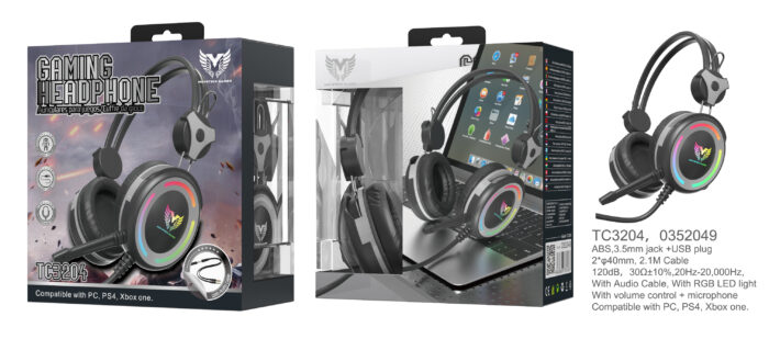 • TC3204 RJ+NE Auriculares Casco Gaming con Microfono y Control de volumen, Cable 2,1 M, Adaptador Audio Jack 2en 1 incluido, , Luz RGB, Rojo+Negro