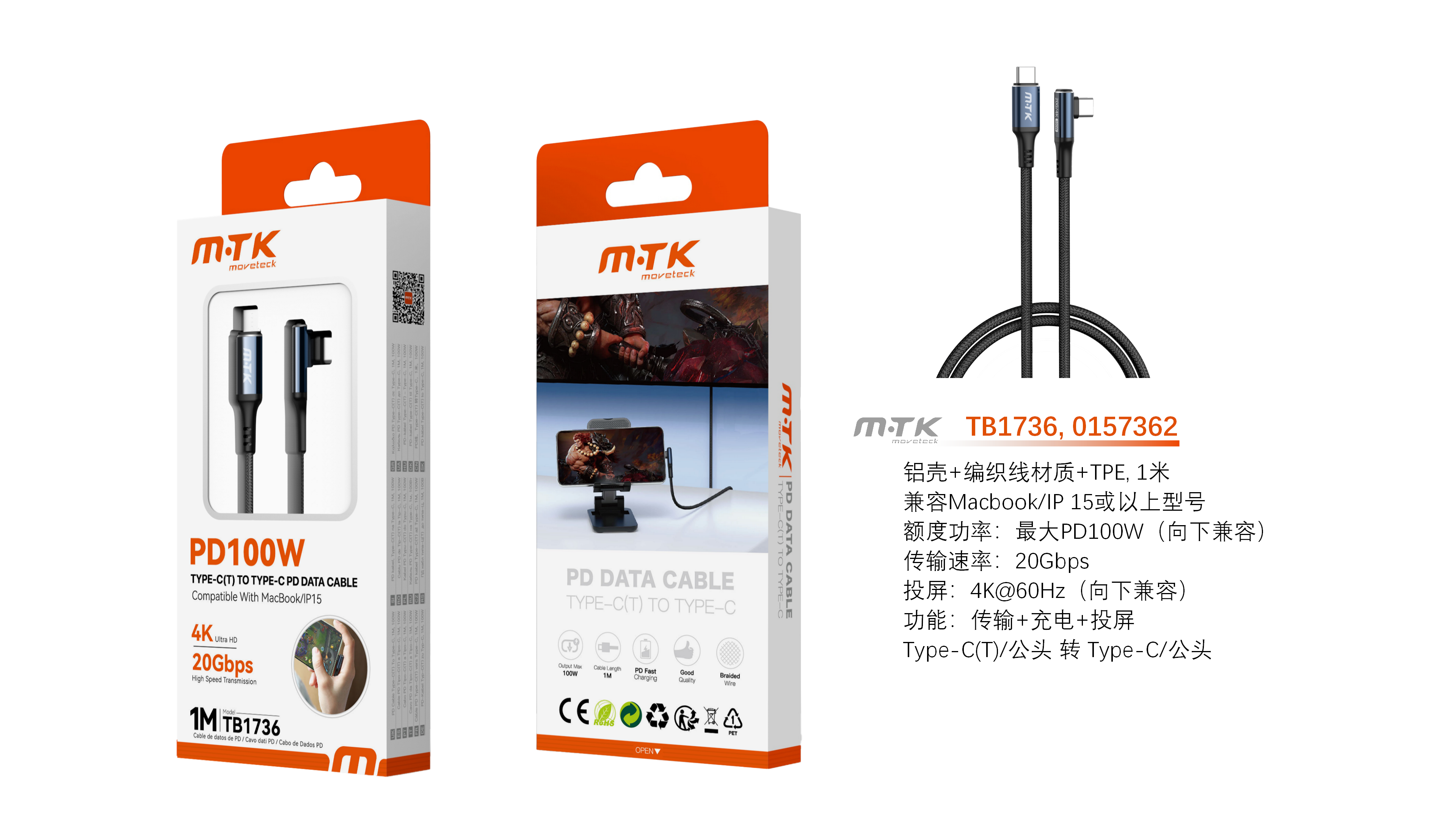 TB1736 NE Luxury Cable de Datos y Videos Trevok aluminio trenzado en T Type-C a Type-C . 20Gbps/100W/4K/60hz/1M. Compatible con Apple Type-C. Negro
