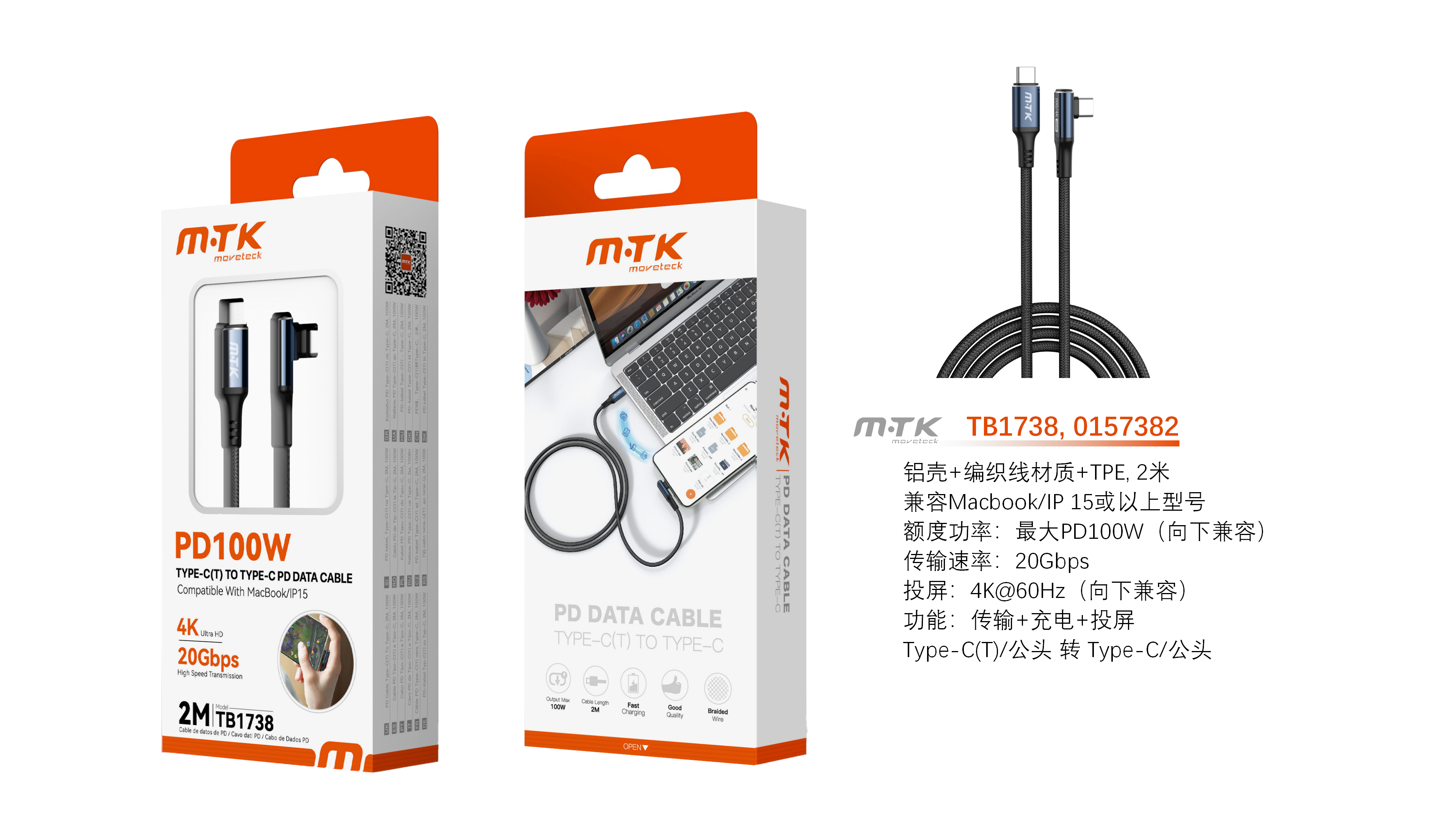 TB1738 NE Luxury Cable de Datos y Videos Trevok aluminio trenzado en T Type-C a Type-C . 20Gbps/100W/4K/60hz/2M. Compatible con Apple Type-C. Negro