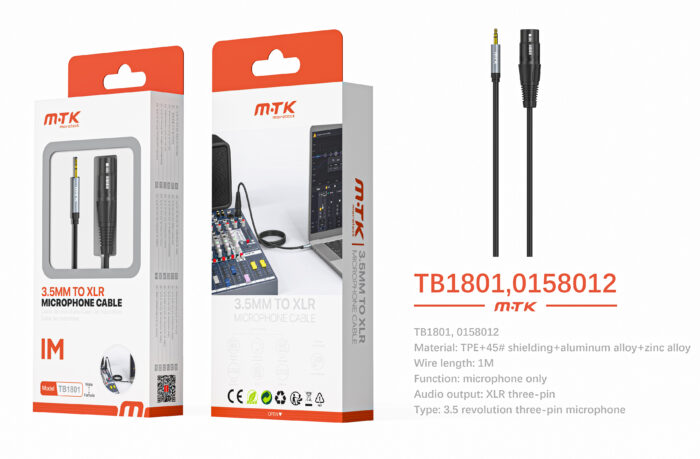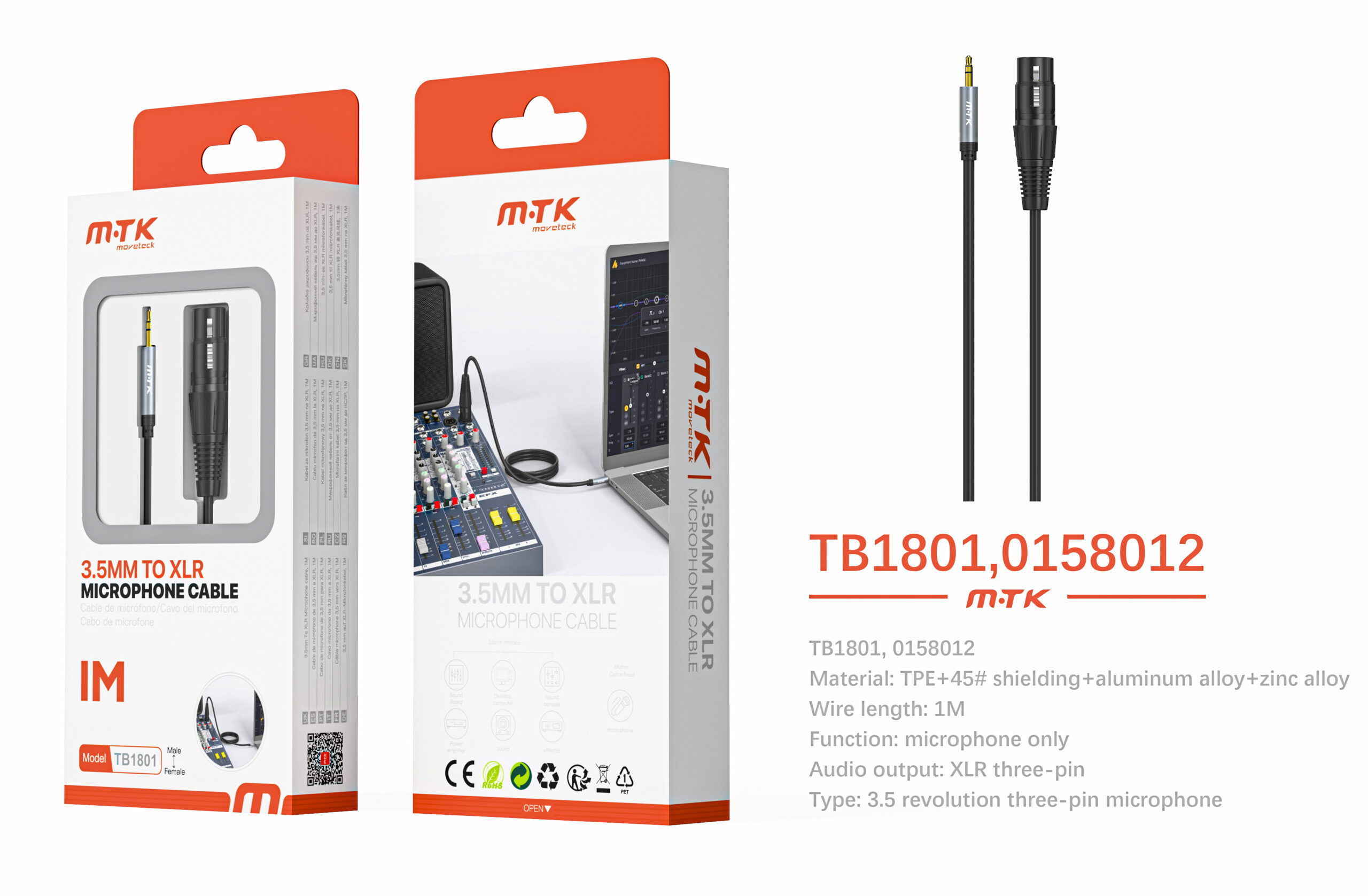 TB1801 NE Luxury Cable de audio blindado de aleacion de aluminio y zinc 3.5mm a conector XLR 3 pin para microfono, 1m, Negro