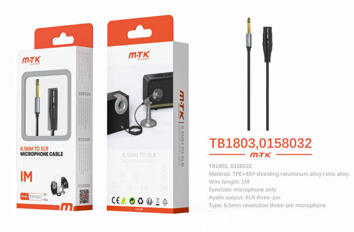 TB1803 NE Luxury Cable de audio blindado de aleacion de aluminio y zinc 6.5mm a conector XLR 3 pin para microfono, 1m, Negro